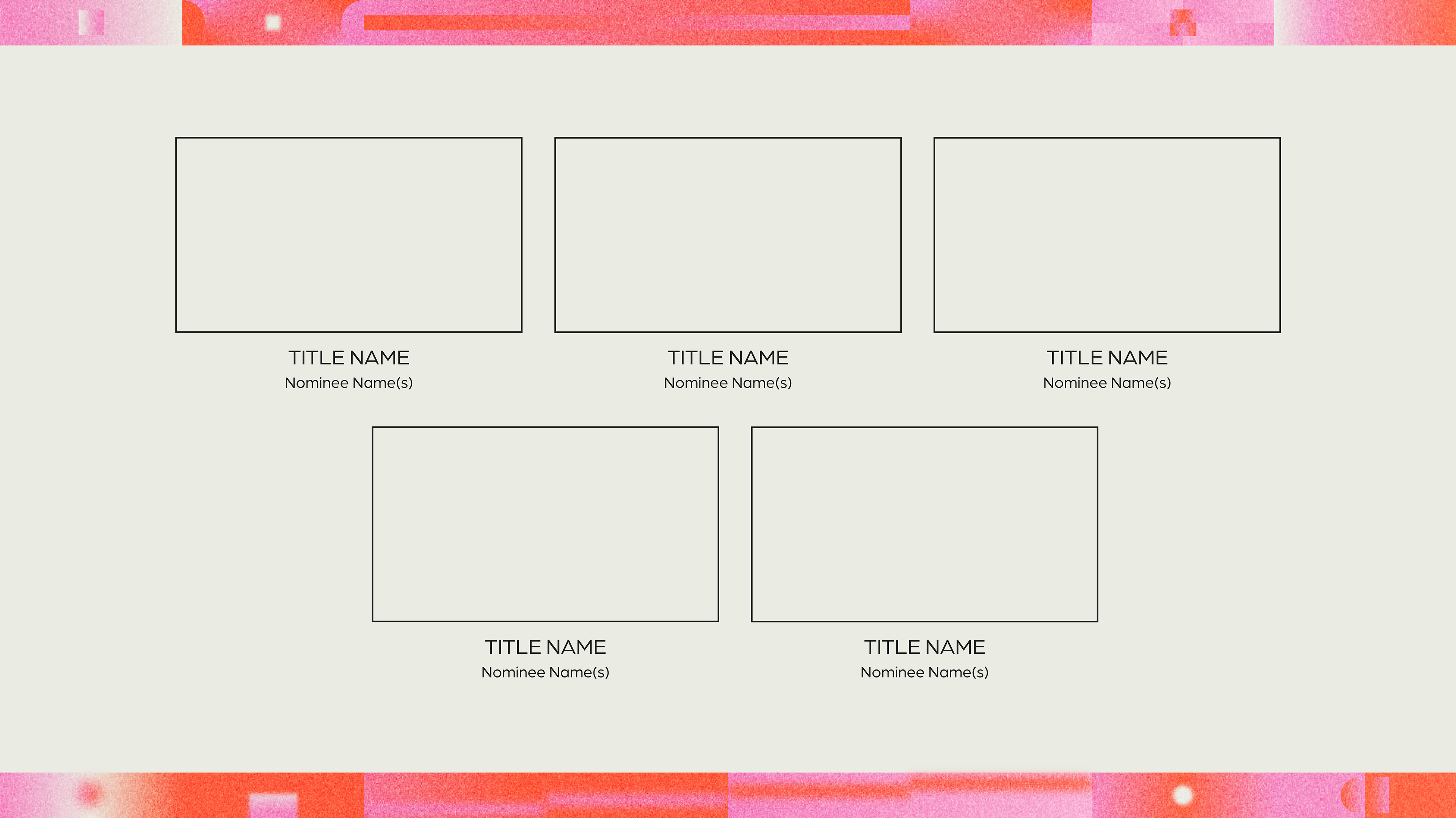 In addition to the title cards, I also designed the nominee mortises for the student showcase. This is the design used to present the student nominees at the showcase.